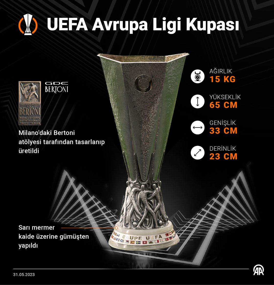 UEFA Avrupa Ligi Kupası, Milano'daki Bertoni atölyesi tarafından tasarlanıp üretildi.