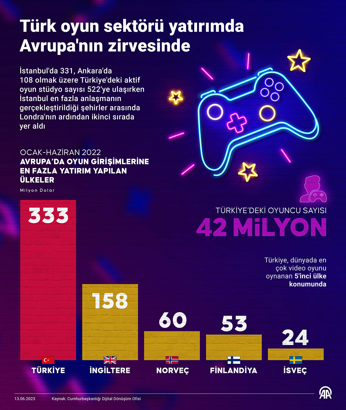 Türk oyun sektörü yatırımında Avrupa'nın zirvesinde