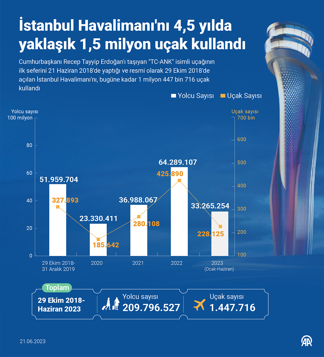 İstanbul Havalimanı'nı 4,5 yılda yaklaşık 1,5 milyon uçak kullandı