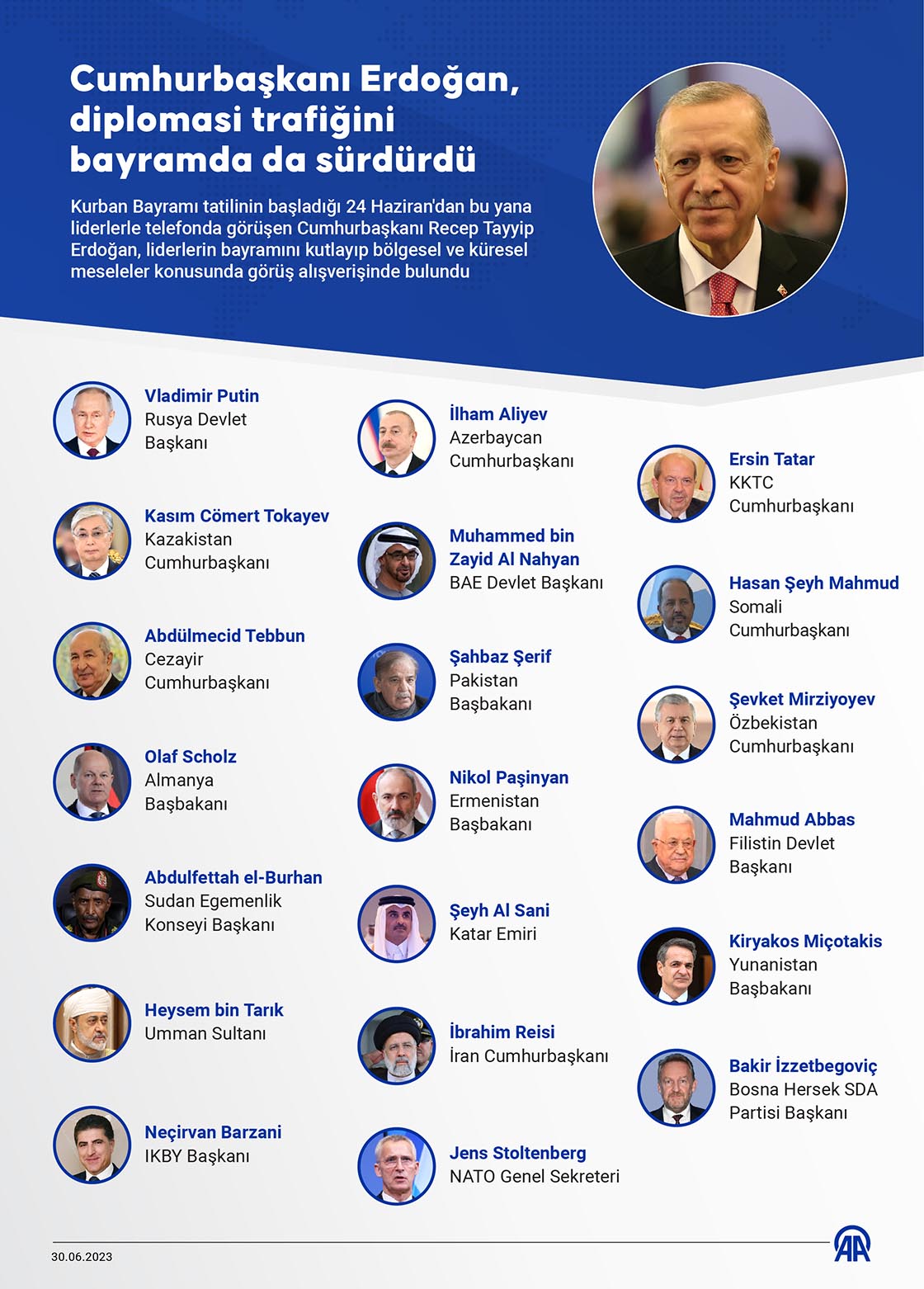 Cumhurbaşkanı Recep Tayyip Erdoğan, Kurban Bayramı tatilinde de yoğun diplomasi trafiği yürüttü. Grafik: Mahmut Resul Karaca/AA