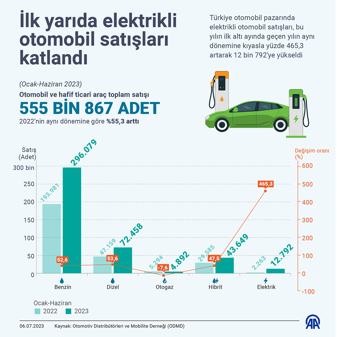 İlk yarıda elektrikli otomobil satışları katlandı