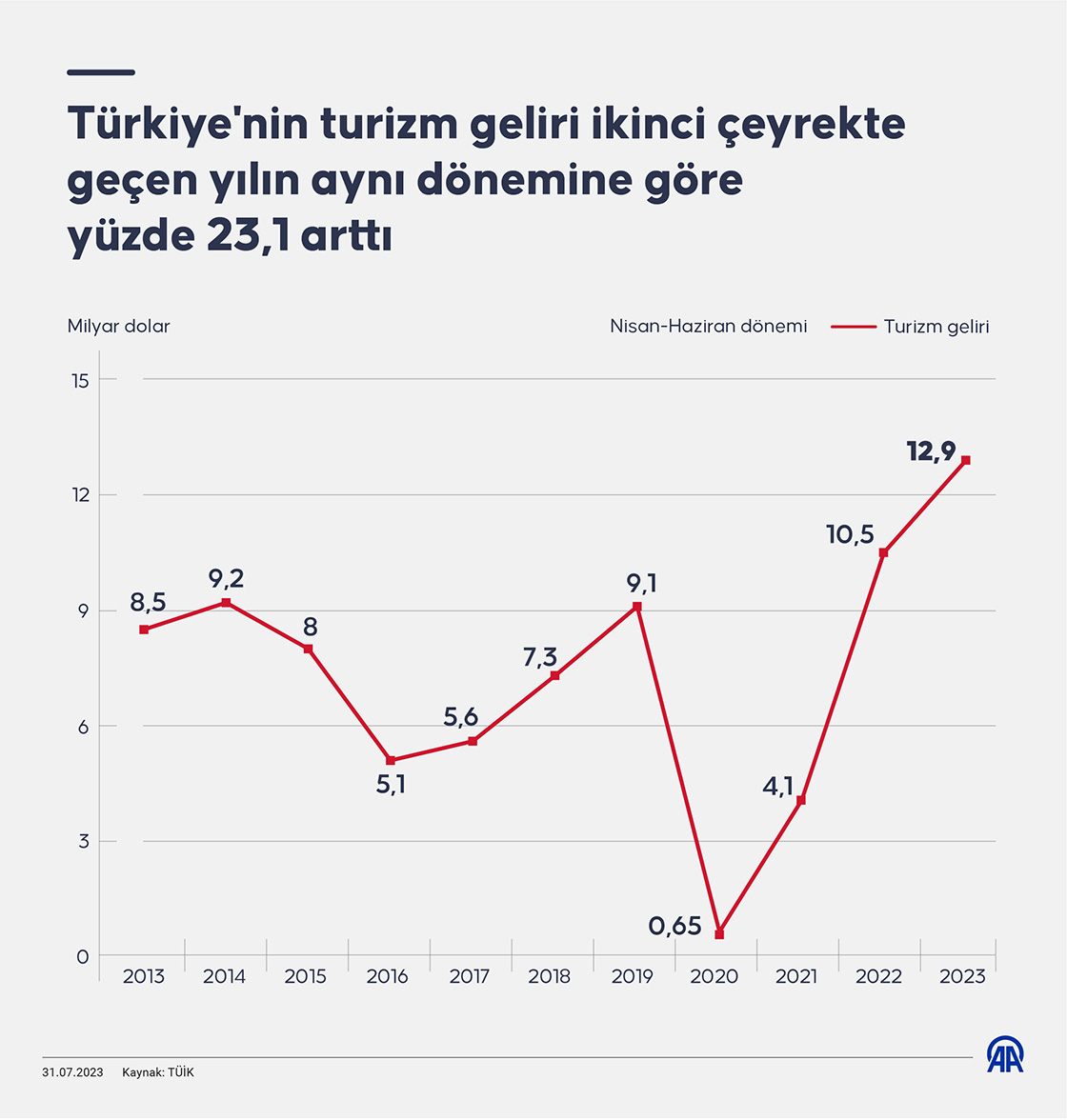 Türkiye'nin turizm geliri yılın ikinci çeyreğinde yıllık bazda yüzde 23,1 arttı