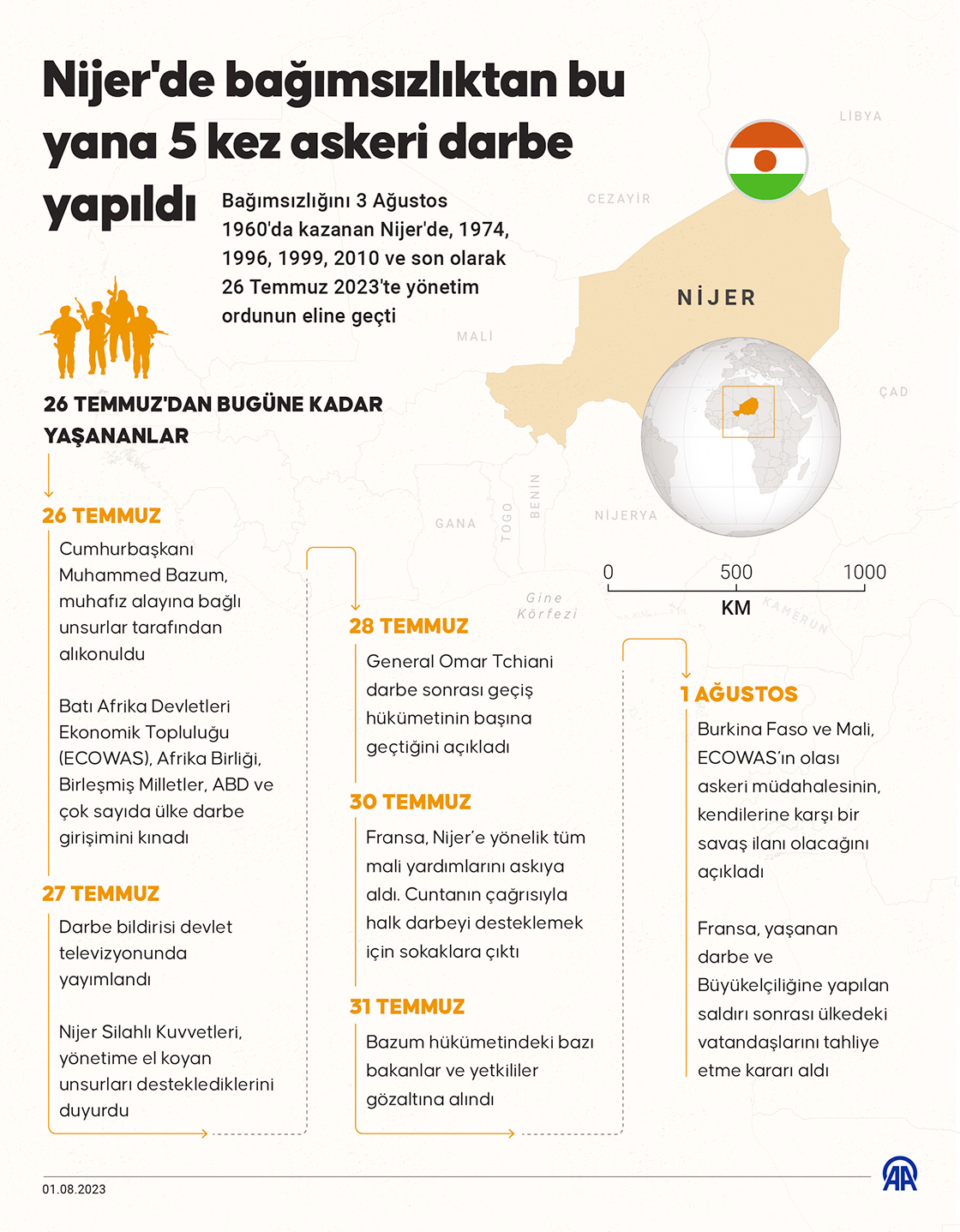 Nijer'de bağımsızlıktan bu yana 5 kez askeri darbe yapıldı