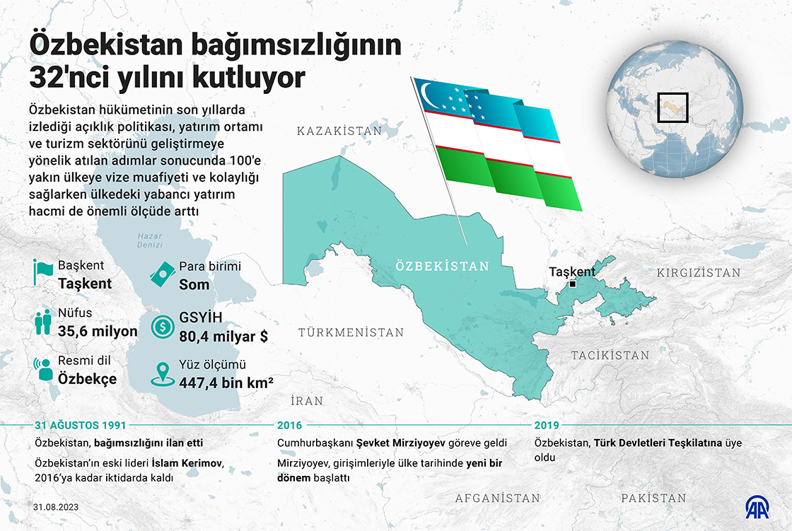 Özbekistan bağımsızlığının 32'nci yılını kutluyor