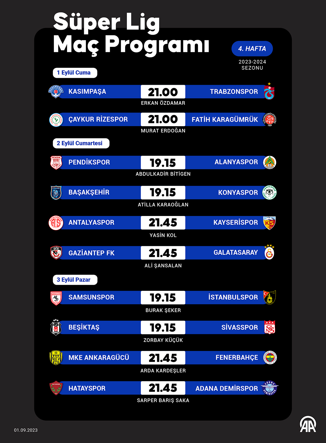 Süper Lig'de 4. hafta mücadelesi 1 Eylül Cuma günü iki maçla başlayacak. (Grafik: Kemal Delikmen/AA)