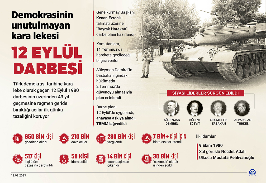Kanlı 12 Eylül darbesinin üzerinden 43 yıl geçti