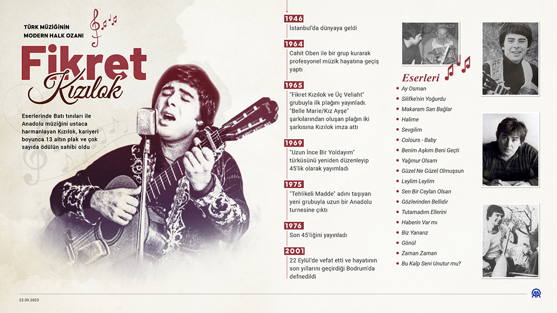 Eserlerinde Batı tınıları ile Anadolu müziğini ustaca harmanlayan Fikret Kızılok, vefatının 22. yılında anılıyor.