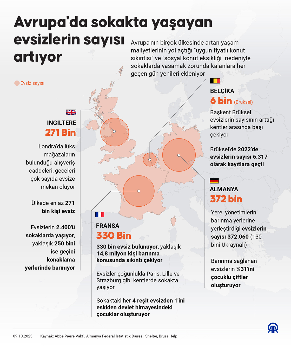 Avrupa'nın birçok ülkesinde artan yaşam maliyetlerinin yol açtığı 'uygun fiyatlı konut sıkıntısı' ve 'sosyal konut eksikliği' nedeniyle sokaklarda yaşamak zorunda kalanlara her geçen gün yenileri ekleniyor. (Grafik: Efnan İpşir/AA)