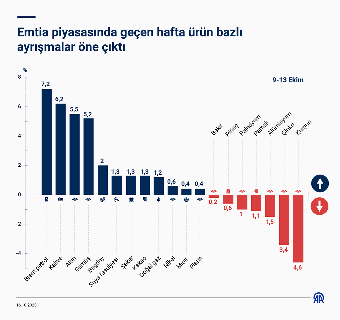 Jeopolitik risklerin etkisiyle geçen hafta yükseliş eğiliminin hakim olduğu emtia piyasasında, ürün bazlı ayrışmalar öne çıktı. (Grafik: Efnan İpşir/AA)
