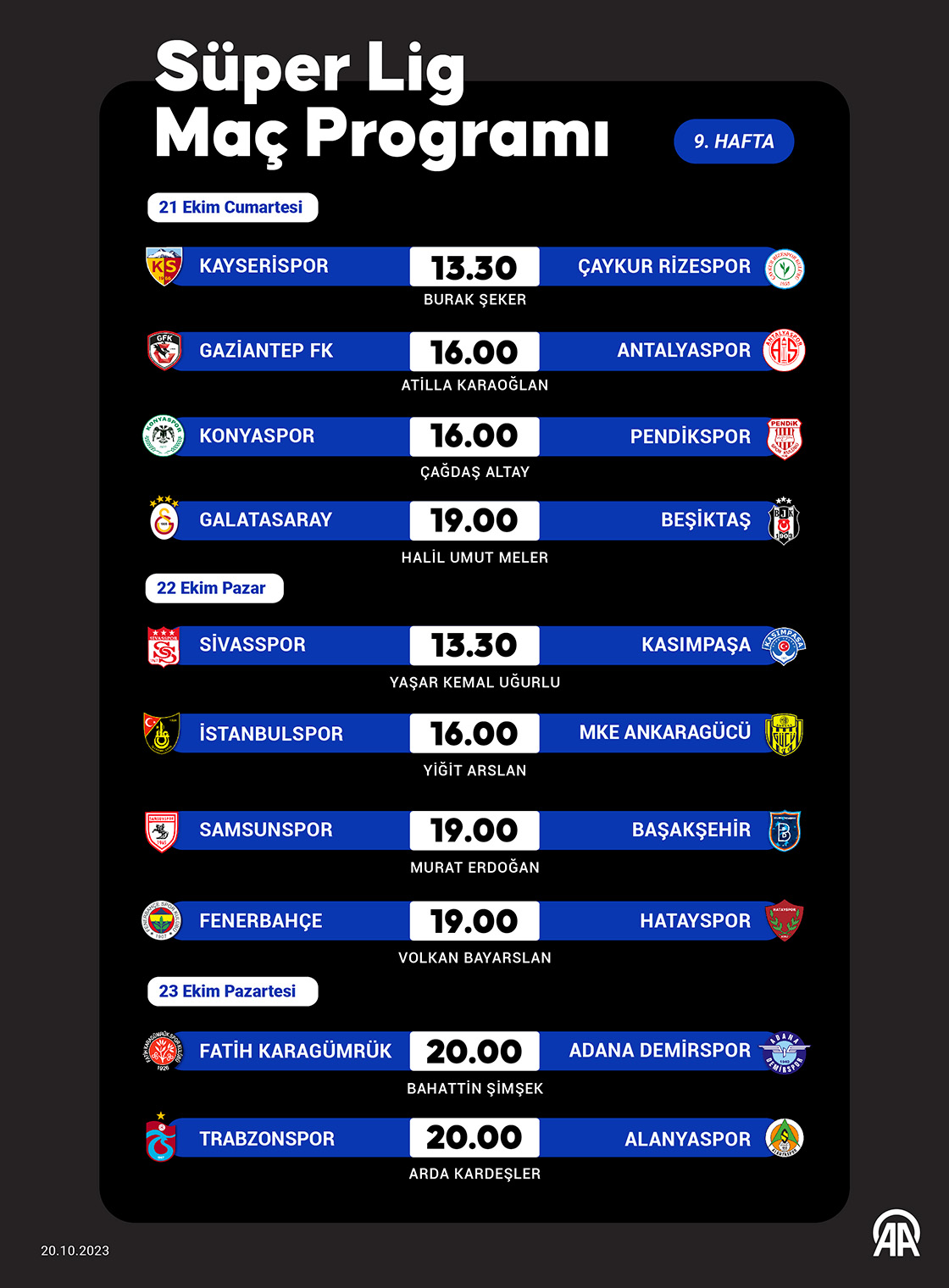 Trendyol Süper Lig'de 9. hafta maçları 21 Ekim Cumartesi günü dört maçla başlayacak. (Grafik: Kemal Delikmen/AA)