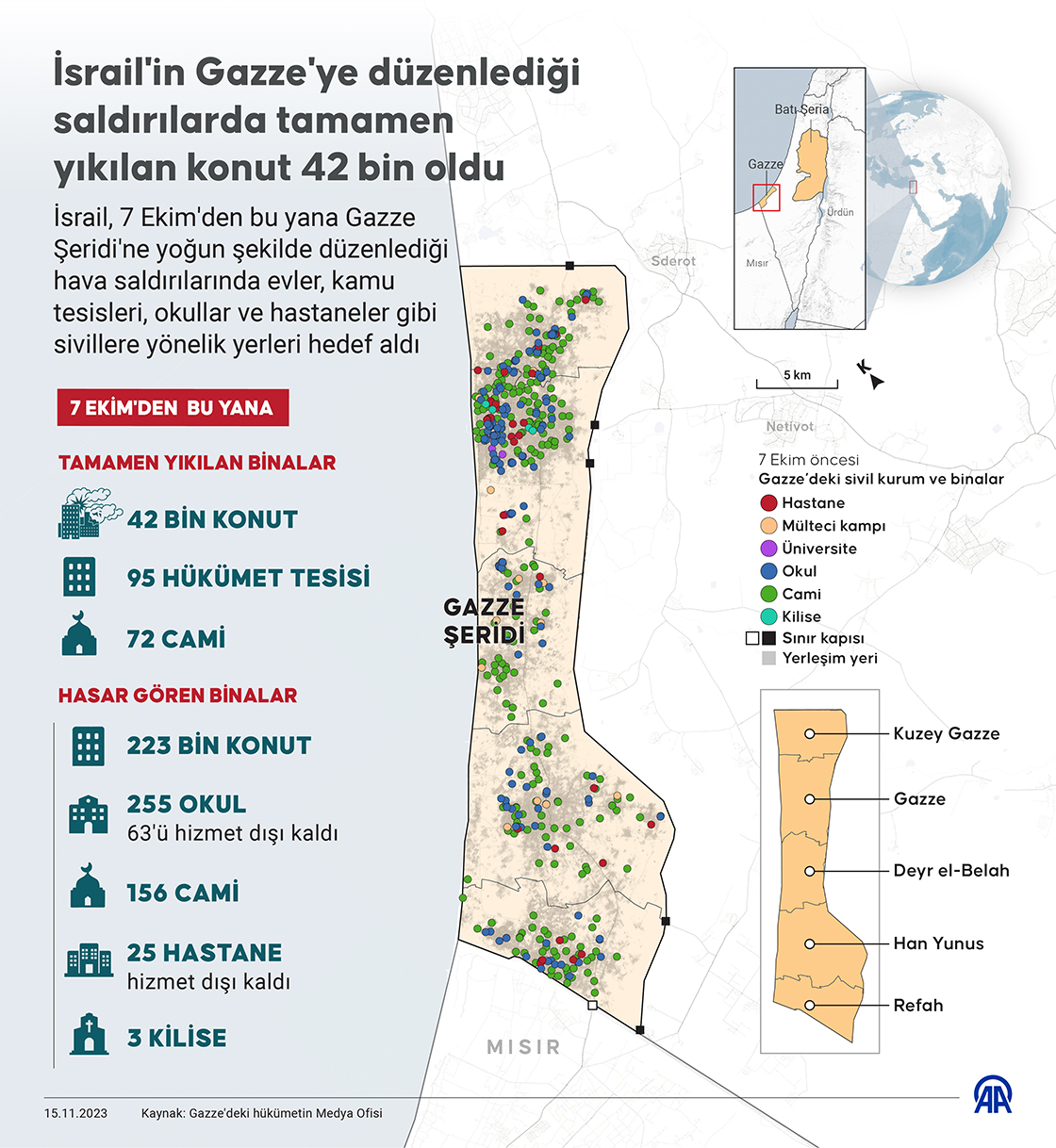 İsrail'in Gazze'ye düzenlediği saldırılarda tamamen yıkılan konut 42 bin oldu