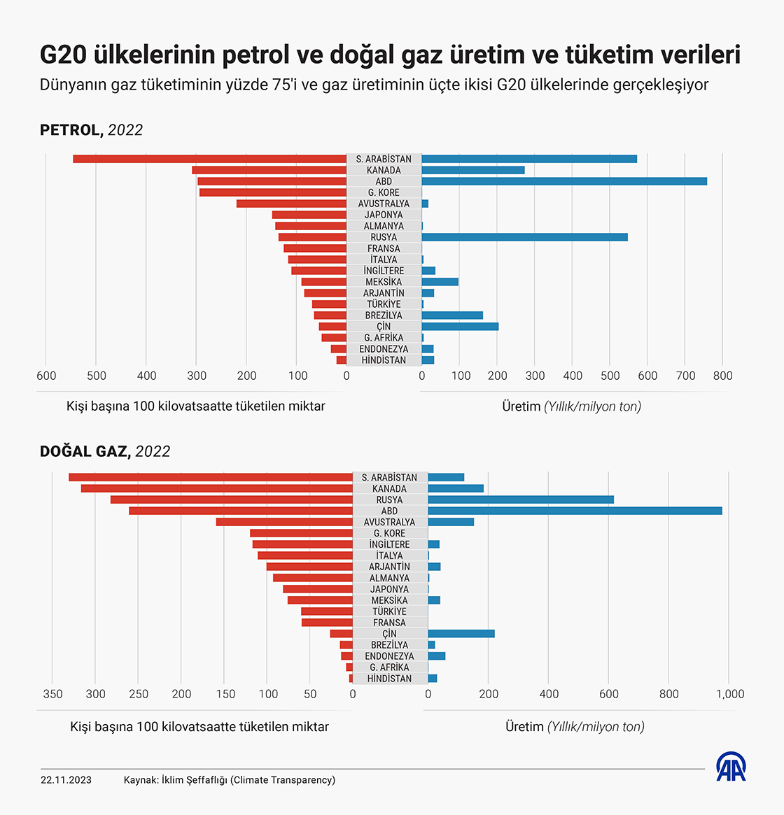 G20 ülkelerinin petrol ve doğal gaz üretim ve tüketim verileri