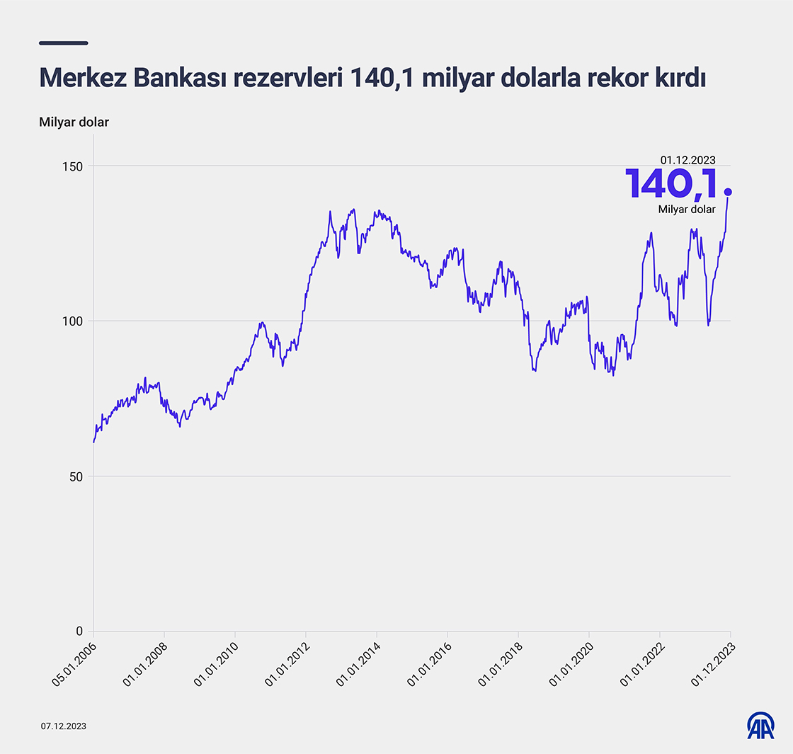 Merkez Bankası rezervleri 140 milyar dolarla rekor kırdı
