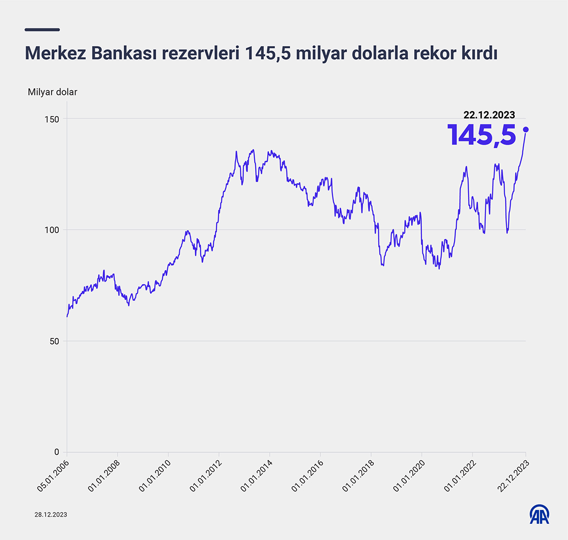 Merkez Bankası rezervleri 145,5 milyar dolarla rekor kırdı