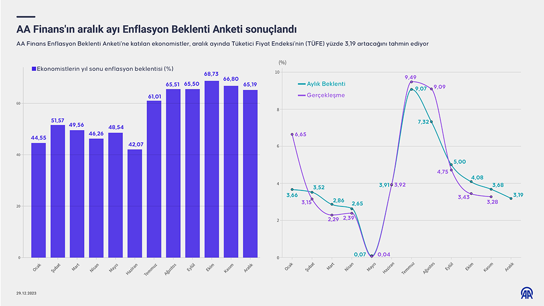 AA Finans Enflasyon Beklenti Anketi'ne katılan ekonomistler, aralık ayında Tüketici Fiyat Endeksi'nin (TÜFE) yüzde 3,19 artacağını tahmin ediyor. (Grafik: Yasin Demirci/AA)