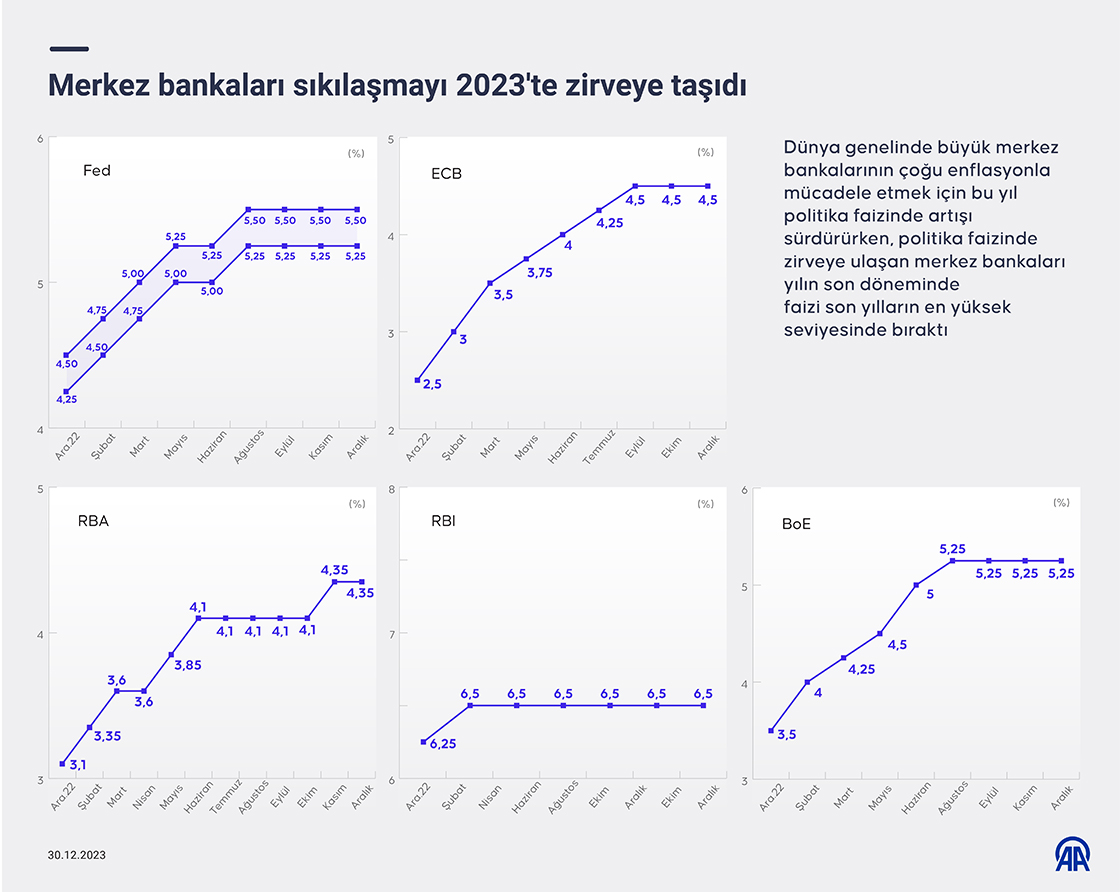 Merkez bankaları sıkılaşmayı 2023'te zirveye taşıdı