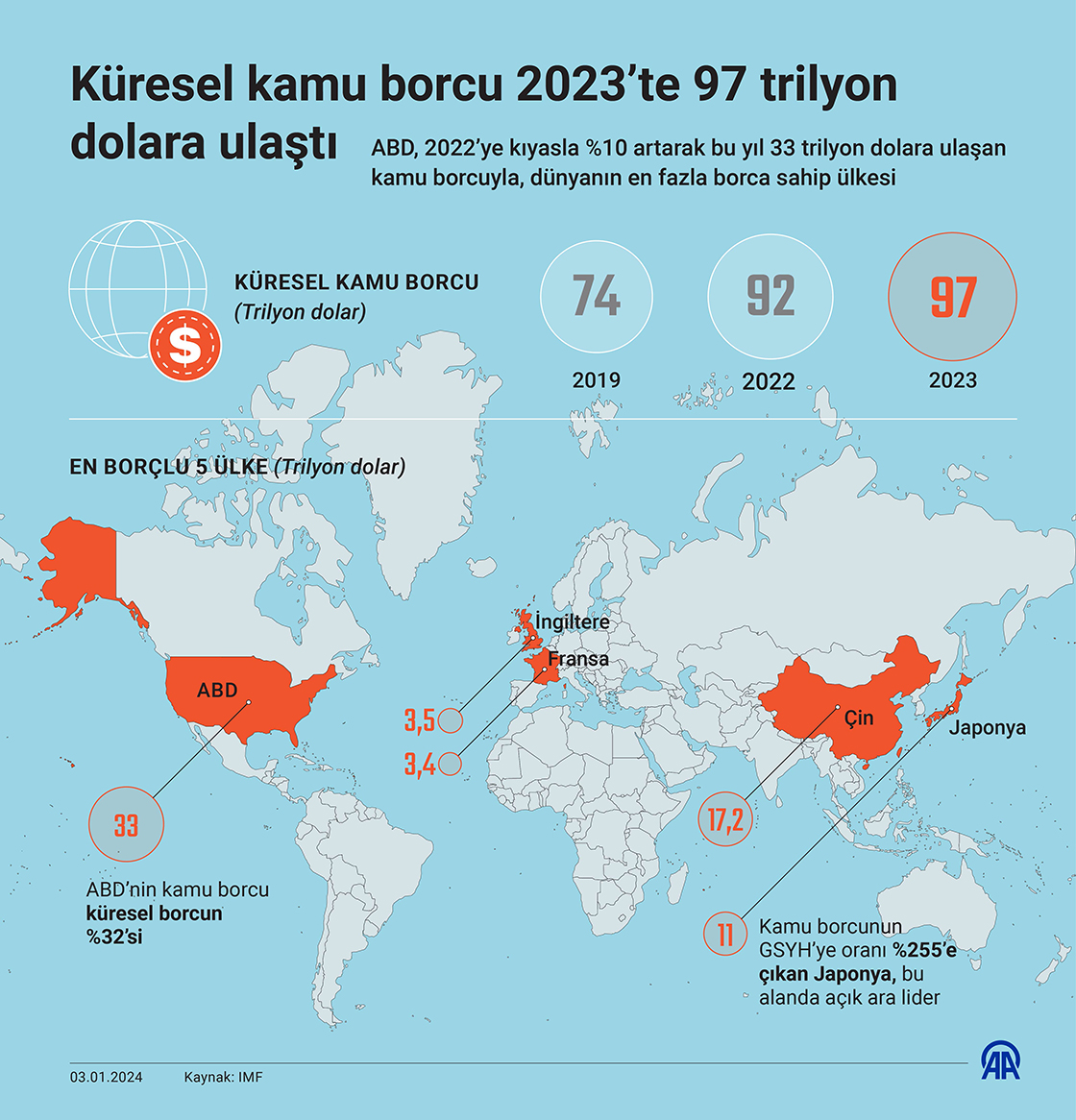 Küresel kamu borcu 2023’te 97 trilyon dolara ulaştı