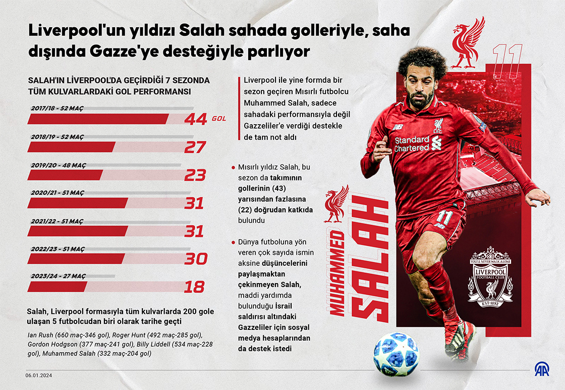 Liverpool'un yıldızı Salah sahada golleriyle, saha dışında Gazze'ye desteğiyle parlıyor