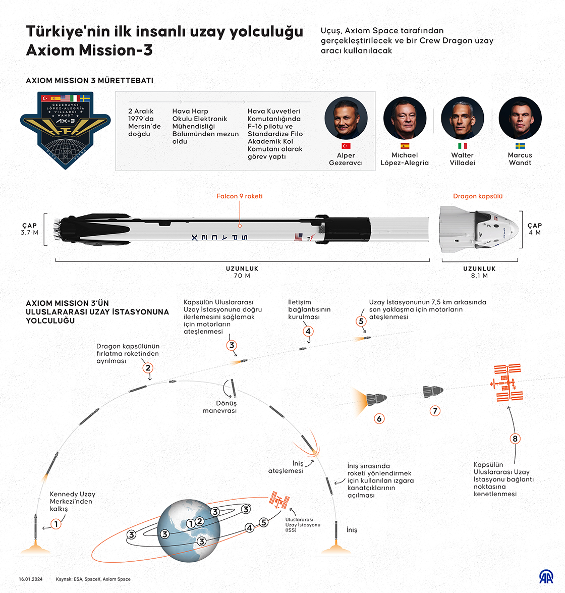 Türkiye'nin ilk insanlı uzay yolculuğu Axiom Mission-3