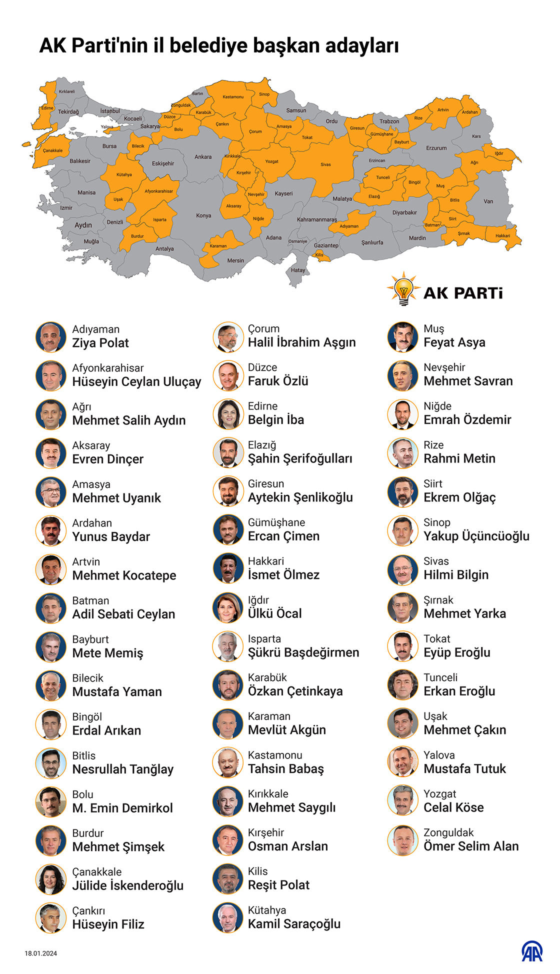 AK Parti'nin il belediye başkan adayları (Grafik: Yasin Demirci/AA)