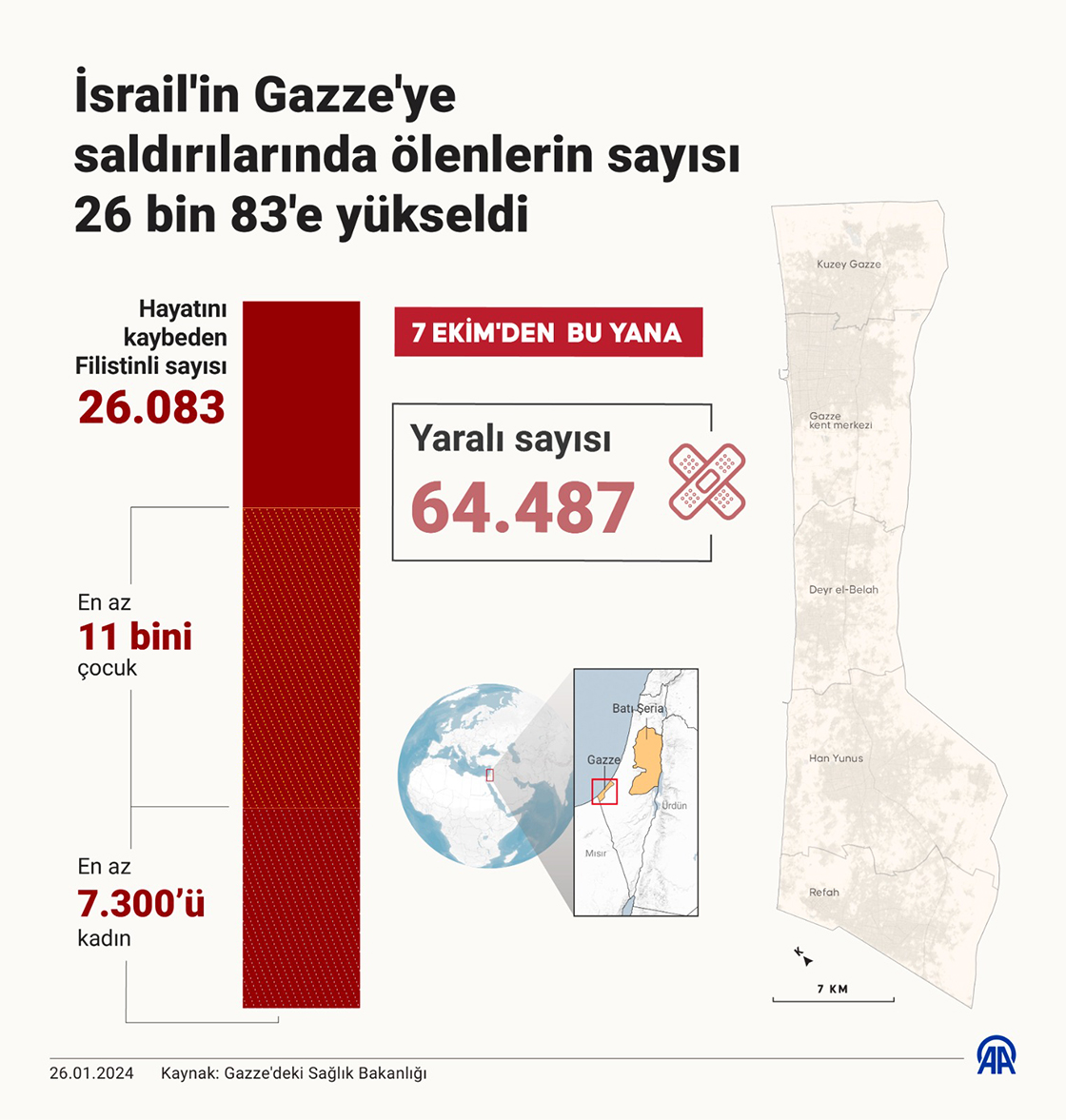 İsrail'in Gazze'ye saldırılarında ölenlerin sayısı 26 bin 83'e yükseldi (Grafik: Omar Zaghlou/AA)