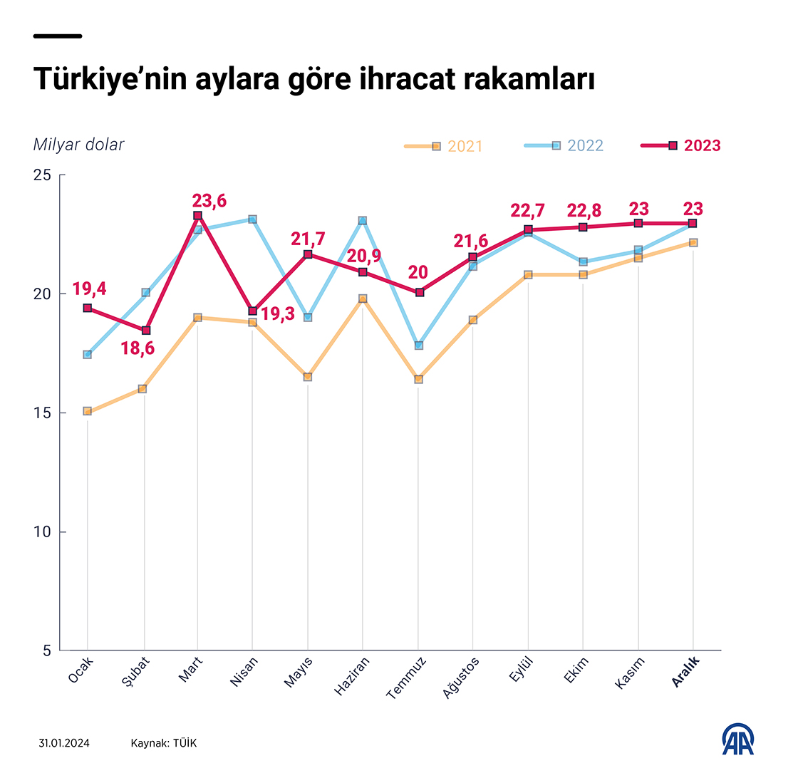Türkiye’nin aylara göre ihracat rakamları (Grafik: Elif Acar/AA)