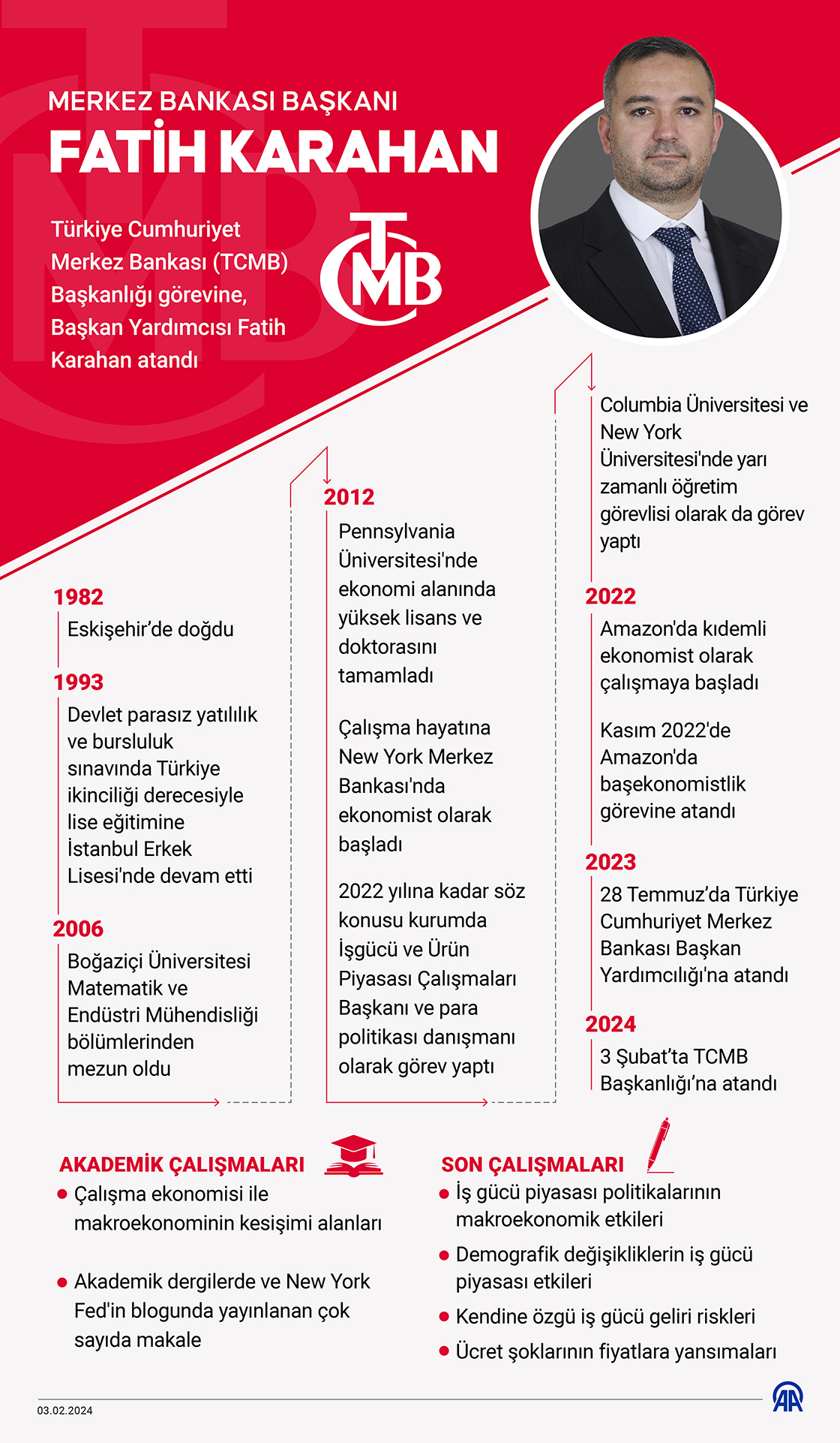 Türkiye Cumhuriyet Merkez Bankası (TCMB) Başkanlığı görevine, Başkan Yardımcısı Fatih Karahan atandı. (Grafik: Muhammed Ali Yiğit/AA)