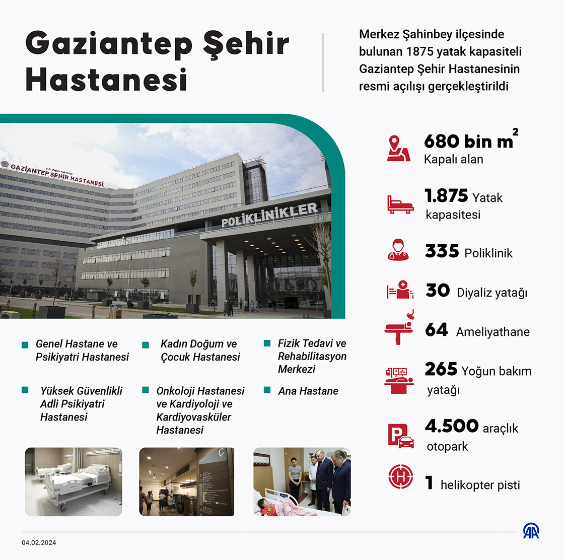 Merkez Şahinbey ilçesinde bulunan 1875 yatak kapasiteli Gaziantep Şehir Hastanesinin resmi açılışı gerçekleştirildi. (Grafik: Efnan İpşir/AA)