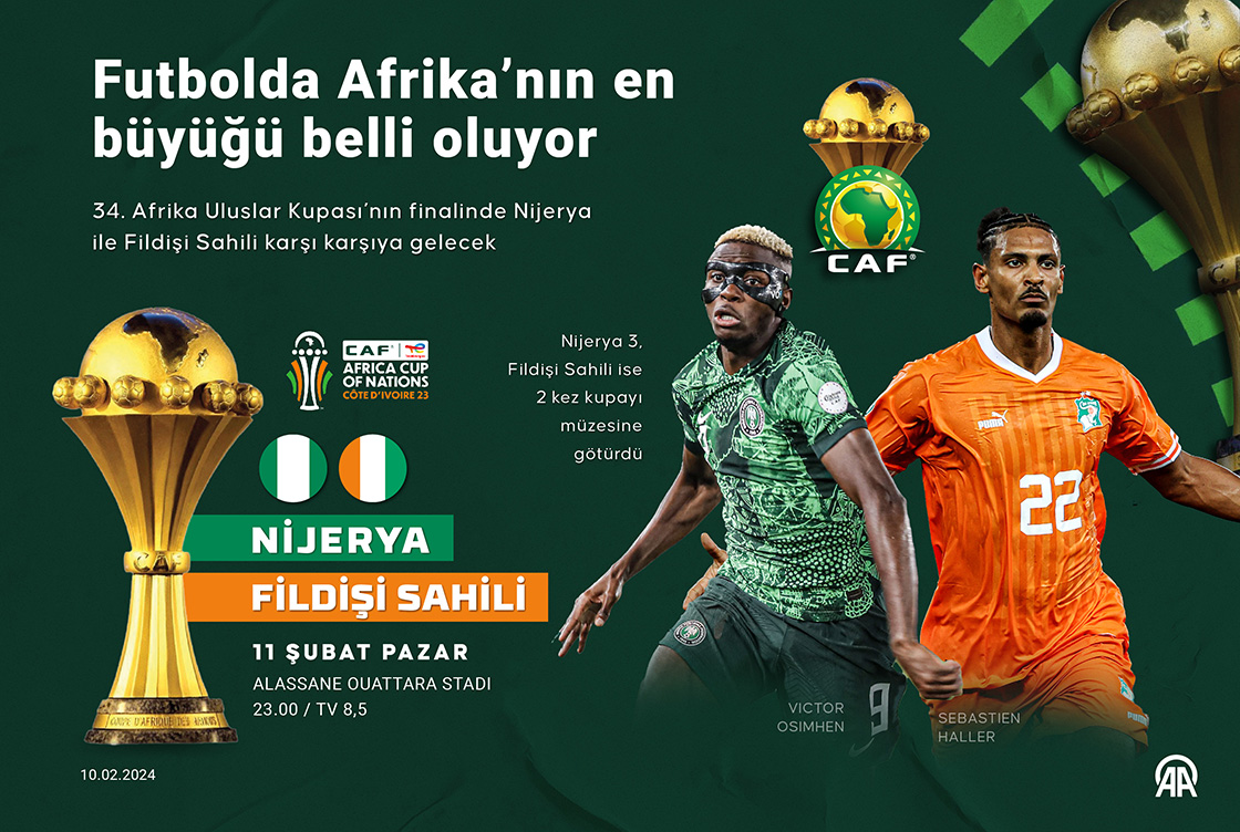 34. Afrika Uluslar Kupası’nın finalinde Nijerya ile Fildişi Sahili karşı karşıya gelecek. (Grafik: Kemal Delikmen/AA)