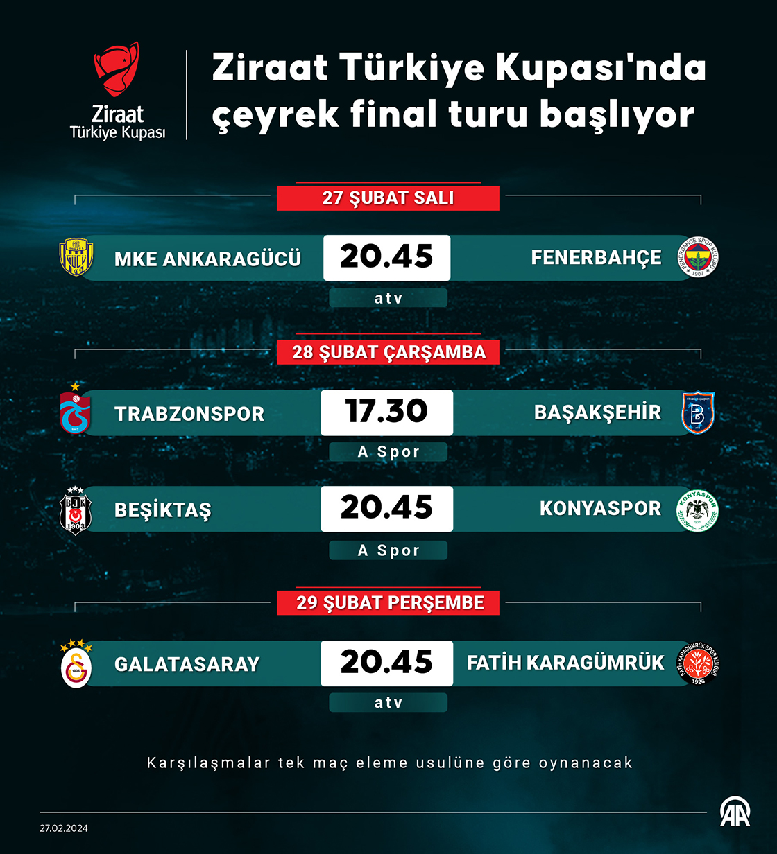 Tek maç eleme usulüne göre oynanacak karşılaşmalar sonucunda rakiplerini saf dışı bırakacak ekipler, adını yarı finale yazdıracak. (Grafik: Kemal Delikmen/AA)