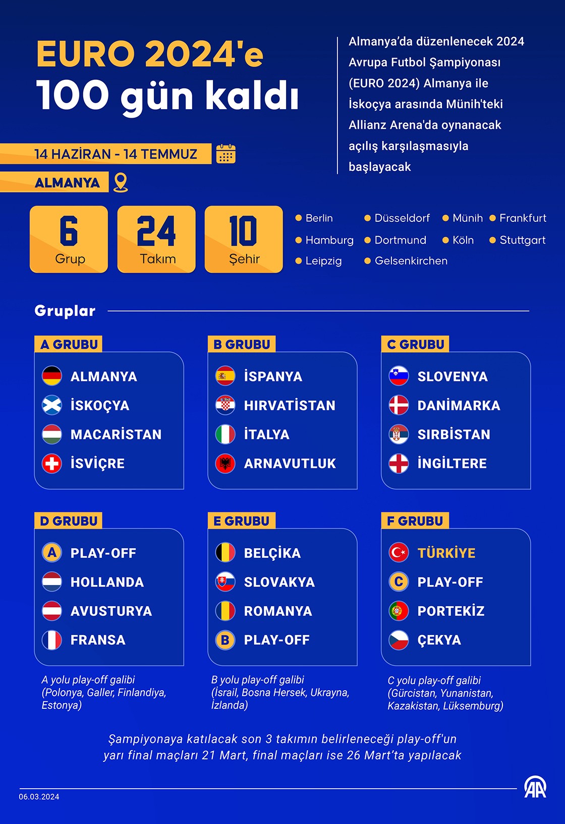 Almanya’da düzenlenecek 2024 Avrupa Futbol Şampiyonası (EURO 2024) Almanya ile İskoçya arasında Münih'teki Allianz Arena'da oynanacak açılış karşılaşmasıyla başlayacak. ( Muhammed Ali Yiğit - Anadolu Ajansı )