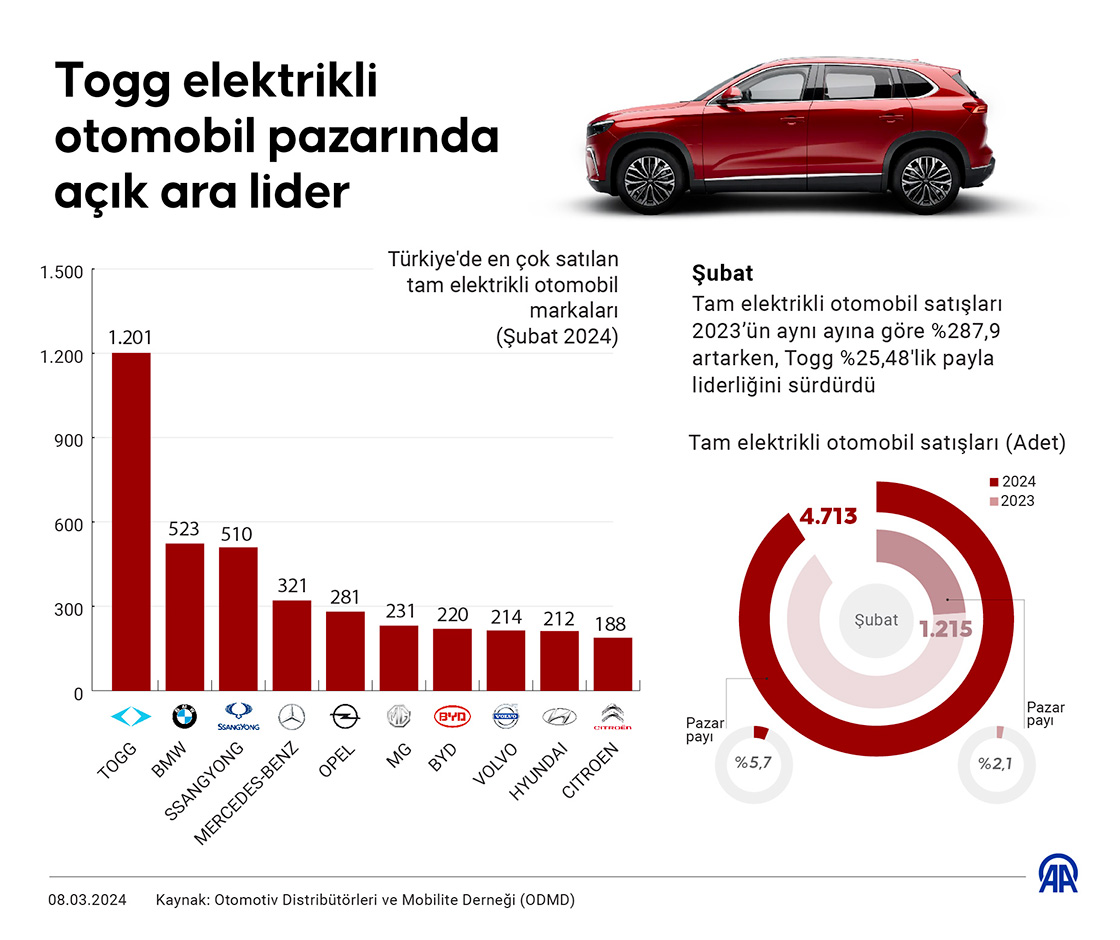Togg elektrikli otomobil pazarında açık ara lider
