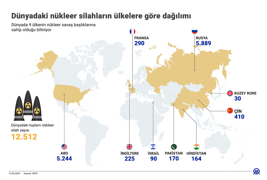 Dünyadaki nükleer silahların ülkelere göre dağılımı