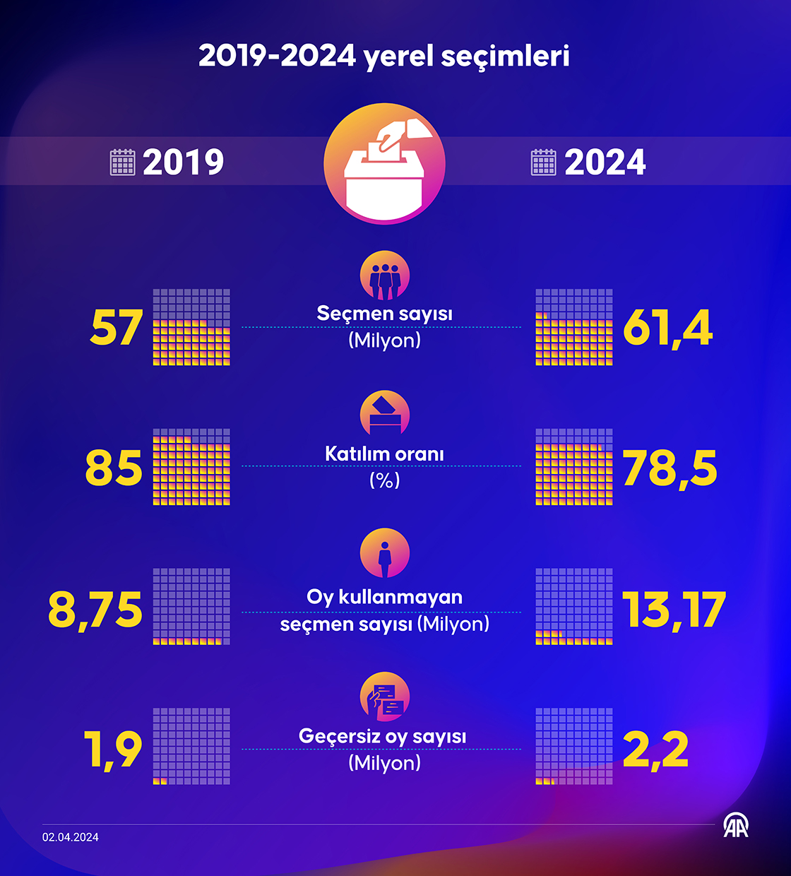 2019-2024 yerel seçimleri. (Grafik: Elmurod Usubaliev/AA)