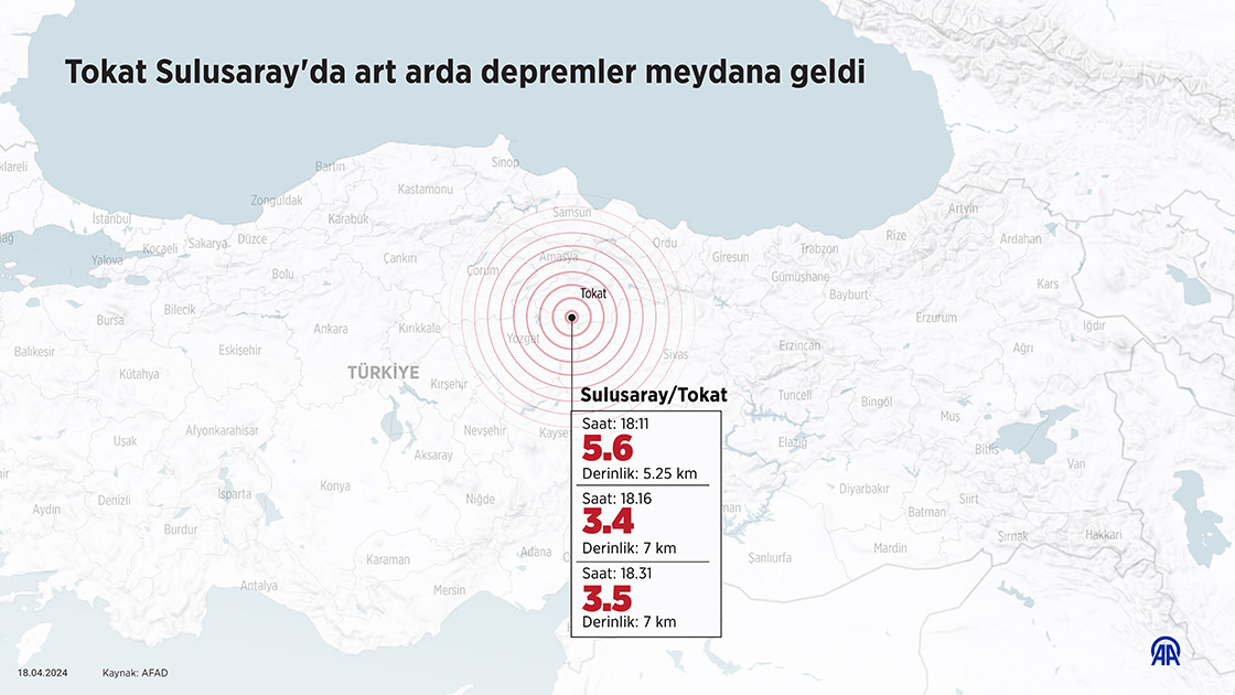 Tokat Sulusaray'da art arda depremler meydana geldi