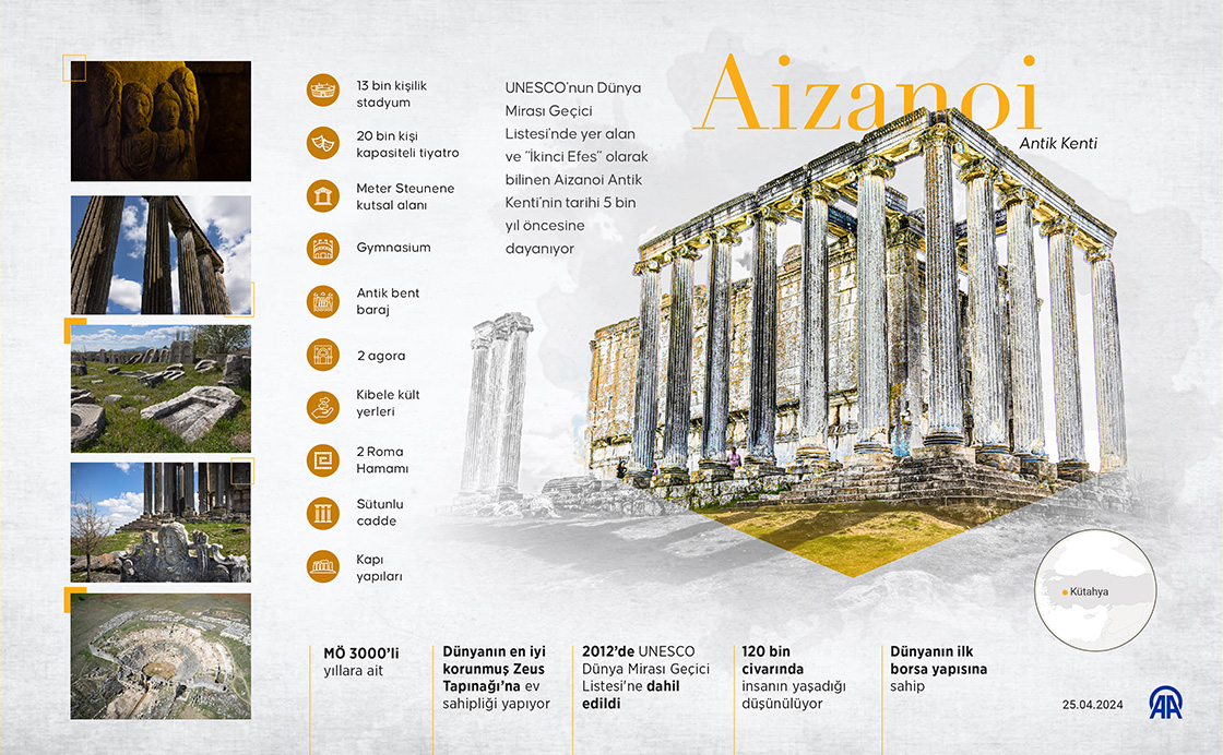 UNESCO'nun Dünya Mirası Geçici Listesi'nde yer alan ve “İkinci Efes” olarak bilinen Aizanoi Antik Kenti’nin tarihi 5 bin yıl öncesine dayanıyor. 8Grafik: Efnan İpşi / AA)