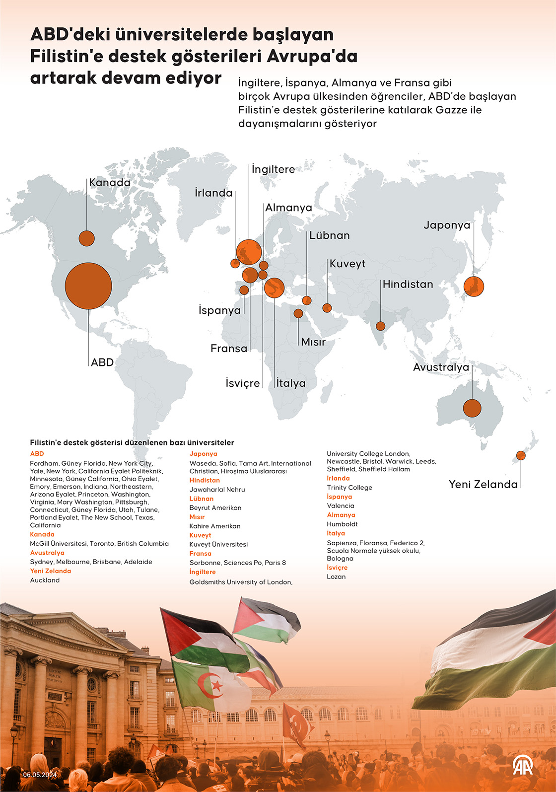 ABD'deki üniversitelerde başlayan Filistin'e destek gösterileri Avrupa'da artarak devam ediyor