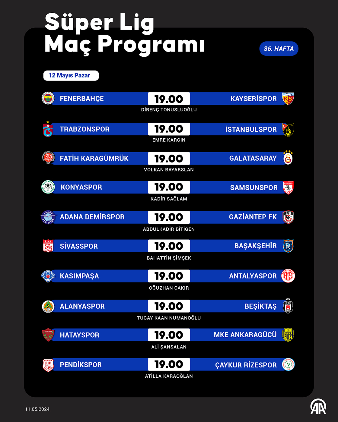 Trendyol Süper Lig'de 36. haftada tüm maçlar aynı gün ve saatte başlayacak. (Grafik: Kemal Delikmen/AA)