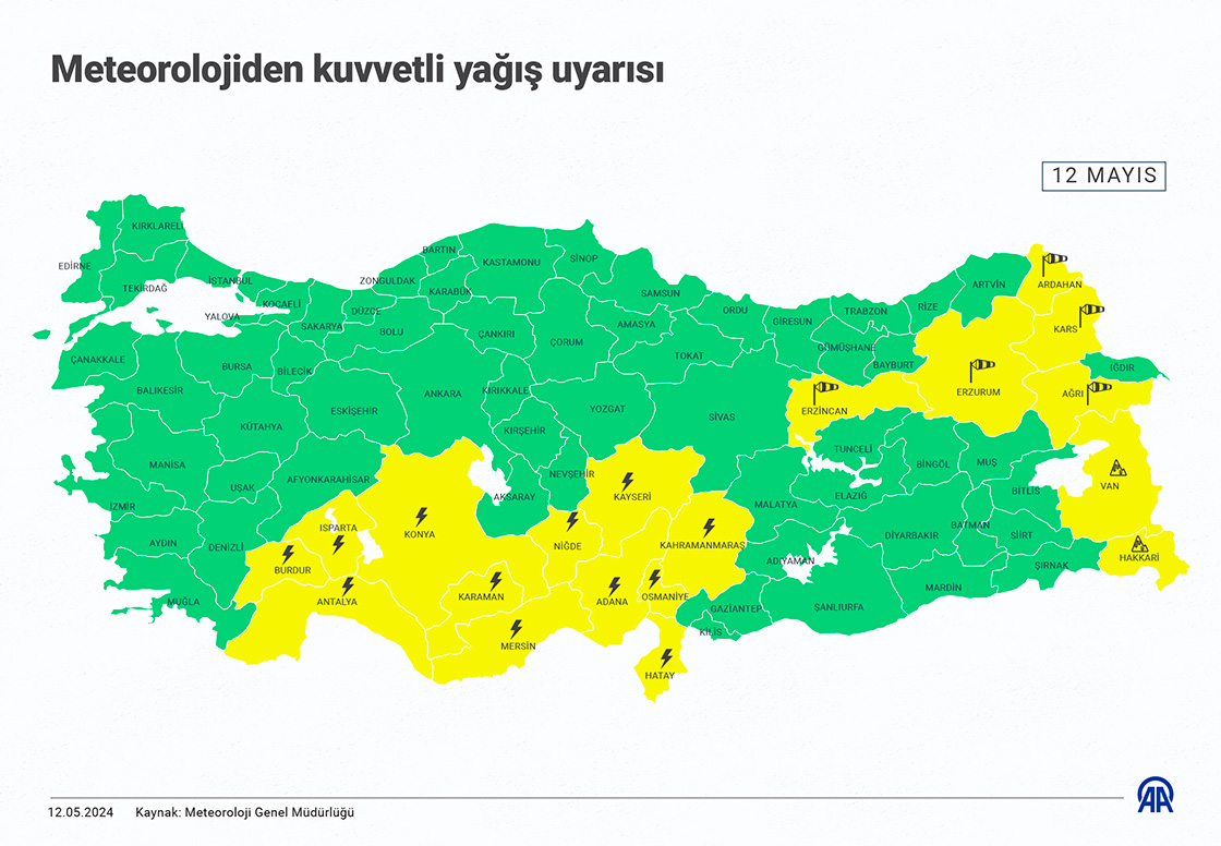 Meteorolojiden kuvvetli yağış uyarısı. (Grafik: Ufuk Celal Güzel/AA)