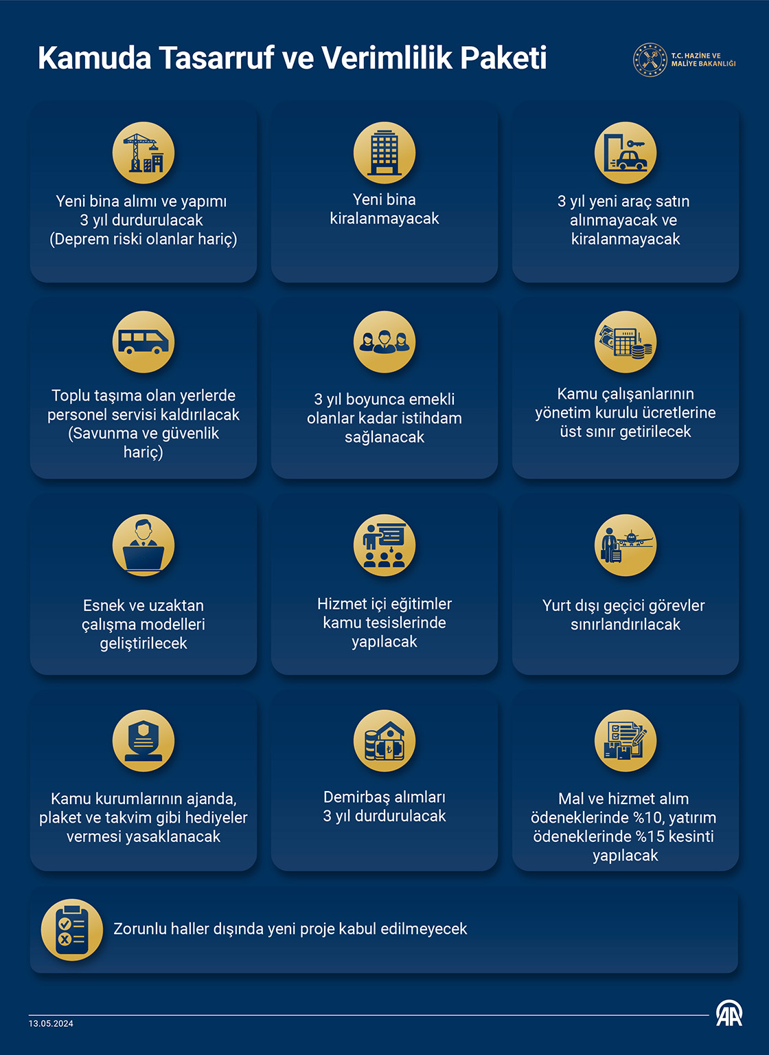 Hazine ve Maliye Bakanı Mehmet Şimşek, 'Deprem riski olanlar hariç yeni bina alımı ve yapımını 3 yıl durduruyoruz. Yeni bina kiralanmasına izin vermeyeceğiz, mevcut kiralamaları da peyderpey sonlandıracağız.' dedi. (Grafik: Omar Zaghloul/AA)