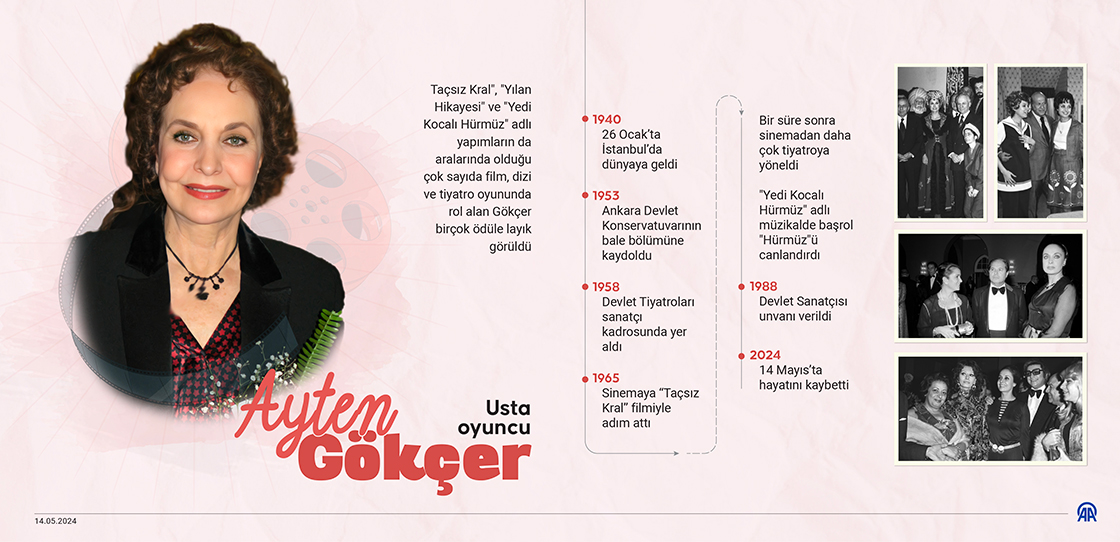 Taçsız Kral', 'Yılan Hikayesi' ve 'Yedi Kocalı Hürmüz' adlı yapımların da aralarında olduğu çok sayıda film, dizi ve tiyatro oyununda rol alan Gökçer birçok ödüle layık görüldü. (Grafik: Ufuk Celal Güzel/AA)