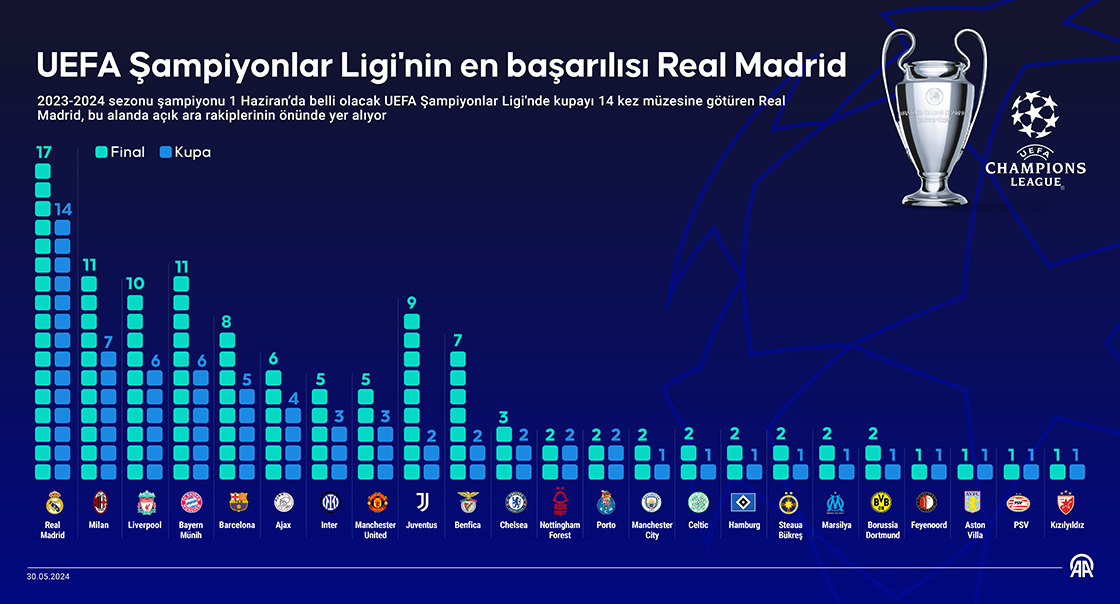 UEFA Şampiyonlar Ligi'nin en başarılısı Real Madrid