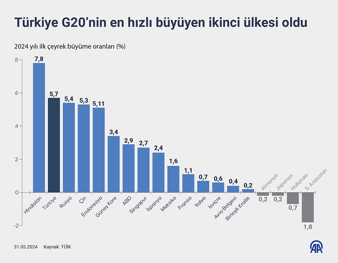 Türkiye G20’nin en hızlı büyüyen ikinci ülkesi oldu