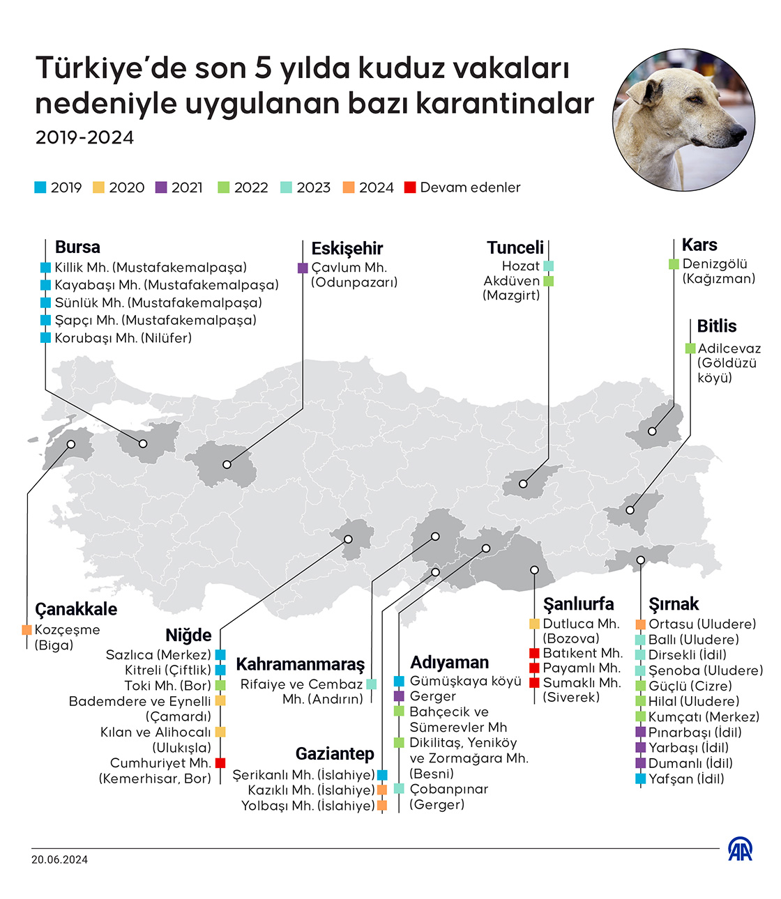 Türkiye’de son 5 yılda kuduz vakaları nedeniyle uygulanan bazı karantinalar