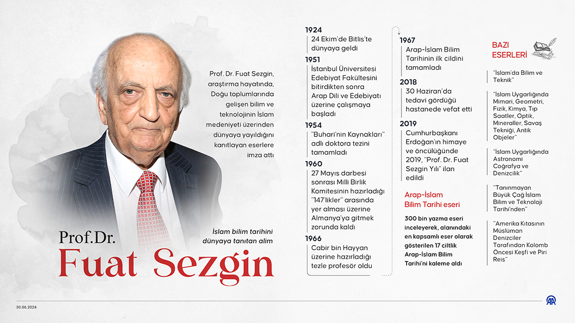 Prof. Dr. Fuat Sezgin, bilimler tarihi alanında yaptığı çalışmalar ve ortaya koyduğu eserlerle dünyanın en önemli otoritelerinden kabul ediliyor. (Grafik: Efnan İpşir/AA)