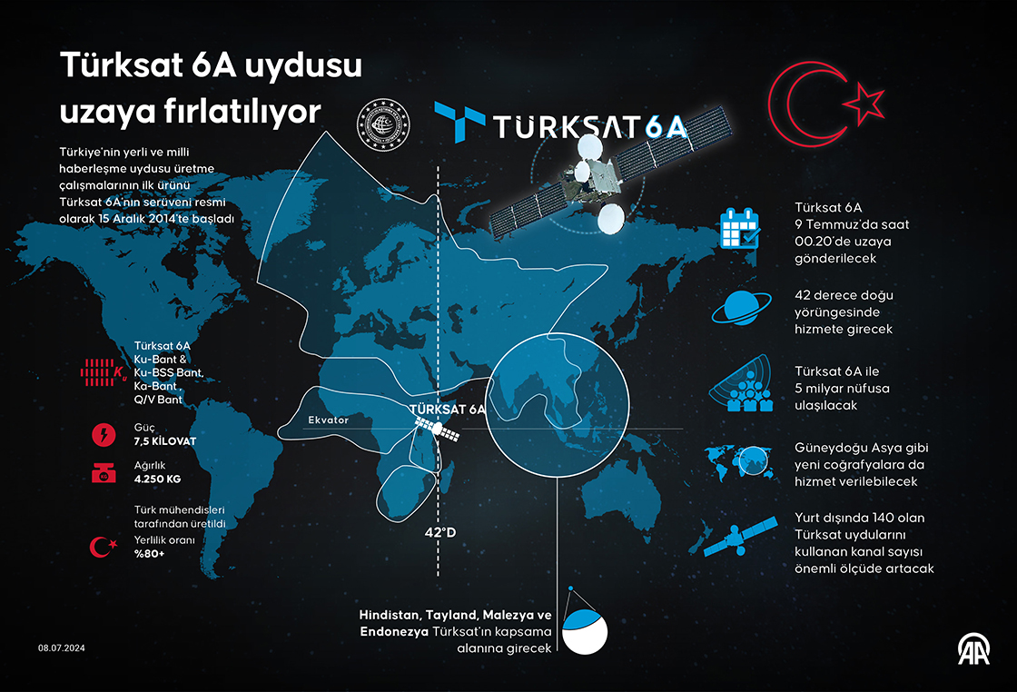 Türksat 6A uydusu bu gece uzaya fırlatılıyor