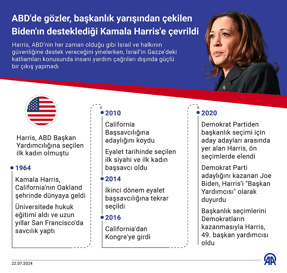 ABD'de gözler, başkanlık yarışından çekilen Biden'ın desteklediği Kamala Harris'e çevrildi