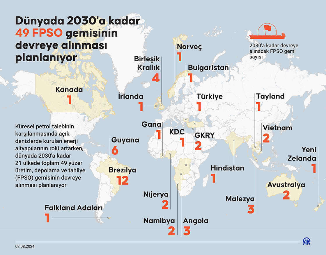Dünyada 2030'a kadar 49 FPSO gemisinin devreye alınması planlanıyor