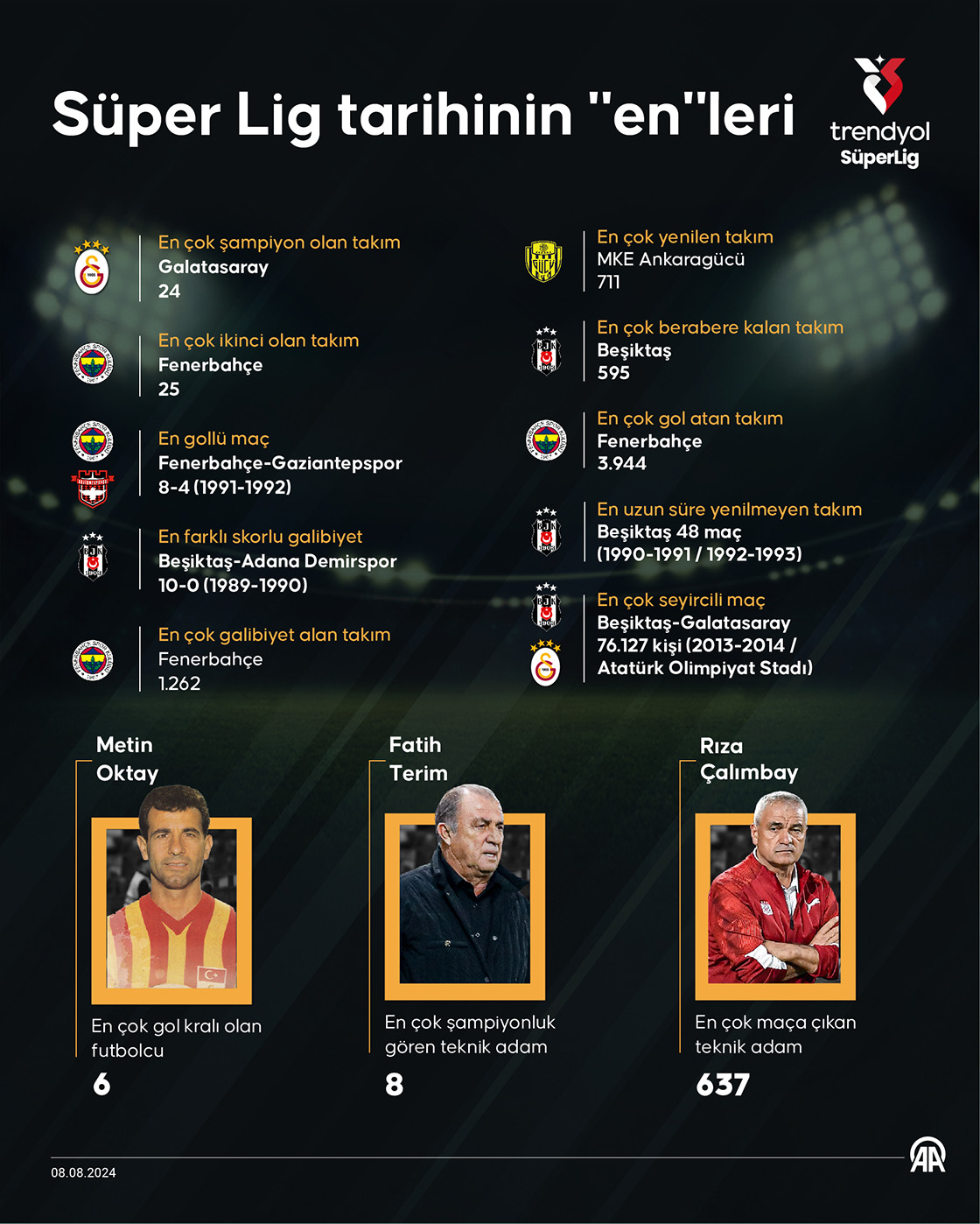 Eski adıyla Türkiye 1. Futbol Ligi, son yıllardaki ismiyle Süper Lig'in 66 yıllık geçmişinde birçok rekora imza atıldı. (Grafik: Efnan İpşir / AA)