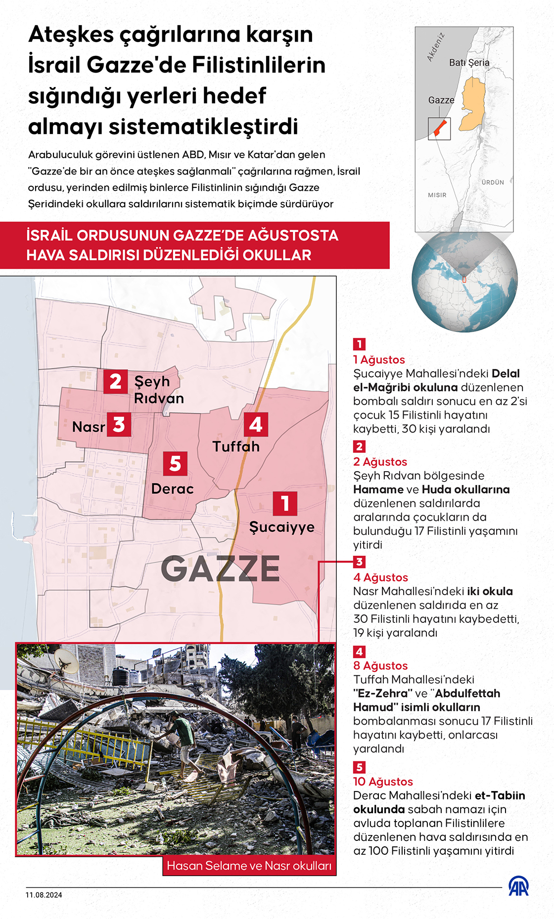 Ateşkes çağrılarına karşın İsrail Gazze'de Filistinlilerin sığındığı yerleri hedef almayı sistematikleştirdi